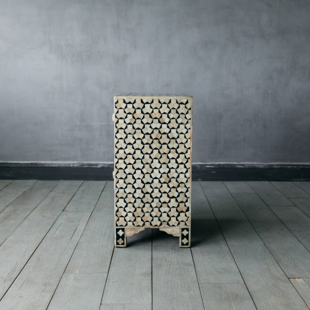 Handmade Bone Inlay Modern Bedside Cabinet l Bone Inlay Night Stand